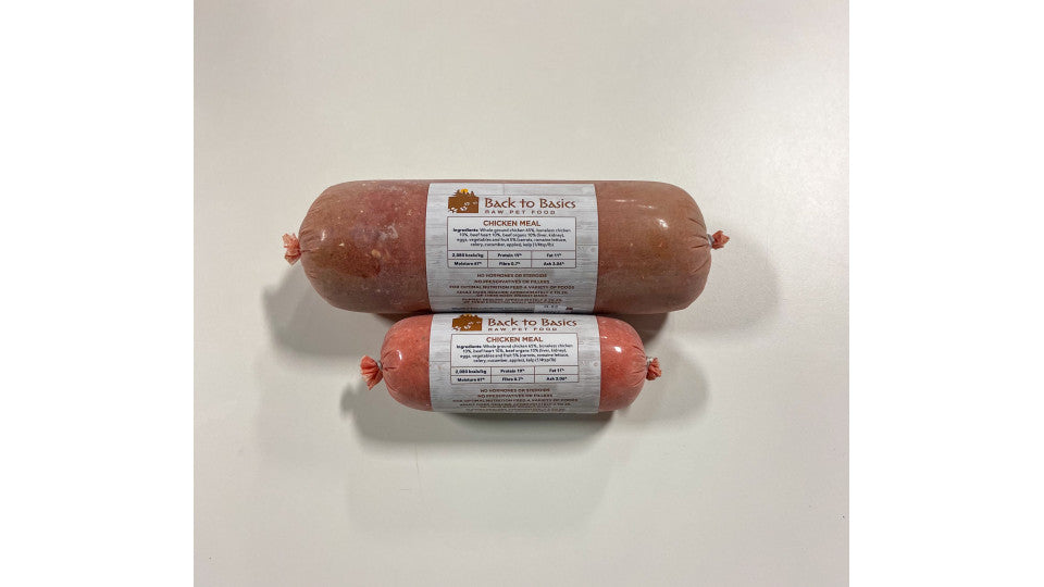 Chicken Meal is made with fresh, whole, vegetarian fed chickens, 10% organ meat and vegetables. The best choice when switching a dog to raw - it is easily digested and not as rich as other formulas. Chicken meal is high in amino acids, essential fatty acids, selenium, niacin, and vitamin B6.Our chicken meal has a high meat content which keeps calcium levels ideal for large breed growing puppies and adult dogs, with a calcium to phosphorus ratio of 1.6:1 and 4.4 grams of calcium per 1000 calories.