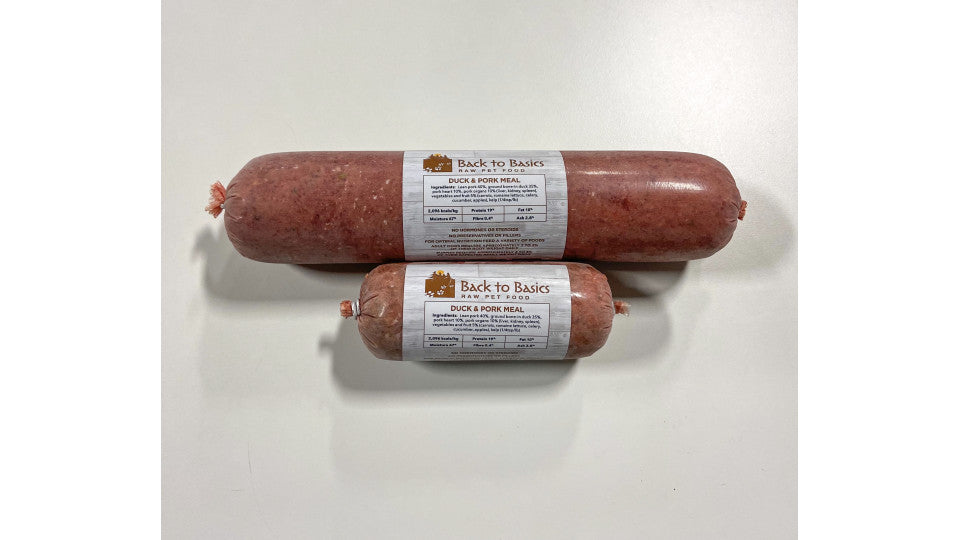 A perfect blend of ground bone-in duck, lean pork and nutritious organs. Complimented with fresh vegetables and organic kelp. A great way to add some variety to your pet's diet and an excellent choice for pets with chicken or beef allergies. Our Duck and Pork formula has an ideal calcium to phosphorus ratio of 1.5:1 and 4.2 grams of calcium per 1000 calories, making it an ideal choice for both adults and growing puppies.