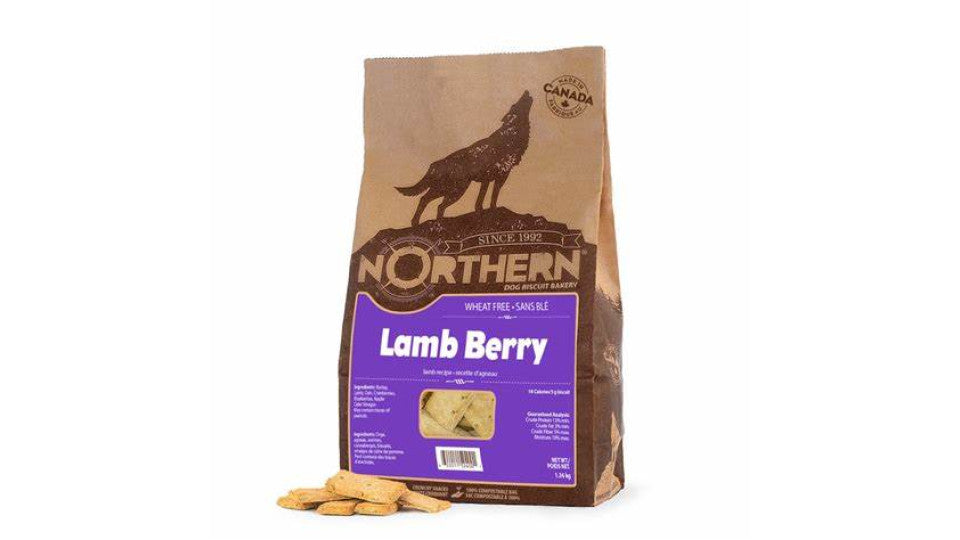 A free roaming, fresh, exotic protein from the grassy hills of New Zealand makes this best selling Northern Biscuit recipe a healthy alternative to beef and easily digestible for sensitive stomachs. Its rich and savoury flavour is paired with sweet whole blueberries and cranberries to create an irresistible treat. Slowly baked in small batches with whole barley and rolled oats, Northern biscuits are naturally preserved and packaged in a 100% compostable bag! At only 18 calories per biscuit, these treats are perfect for treating, rewarding and bonding with your dog.