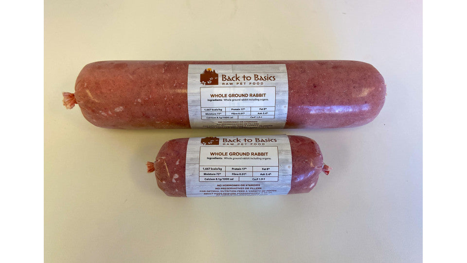 Whole ground bone-in rabbit, including organs. Rabbit is very lean and extremely high in protein. Rabbit has a high concentration of Vitamin B12, as well as potassium, Magnesium and Iron.