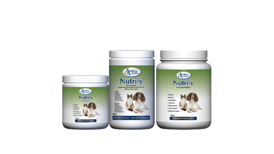 Nutrify is a pet food fortifier manufactured specifically for those pet guardians who wish to ensure their pet’s daily diet is nutritionally balanced. It may be added to homemade raw or cooked pet food, and it may also be added to commercially prepared wet pet foods.